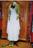 Kinderdirndl aus hellblauem Baumwolldruck mit rosafarbener Schürze und weisen Handdruck |